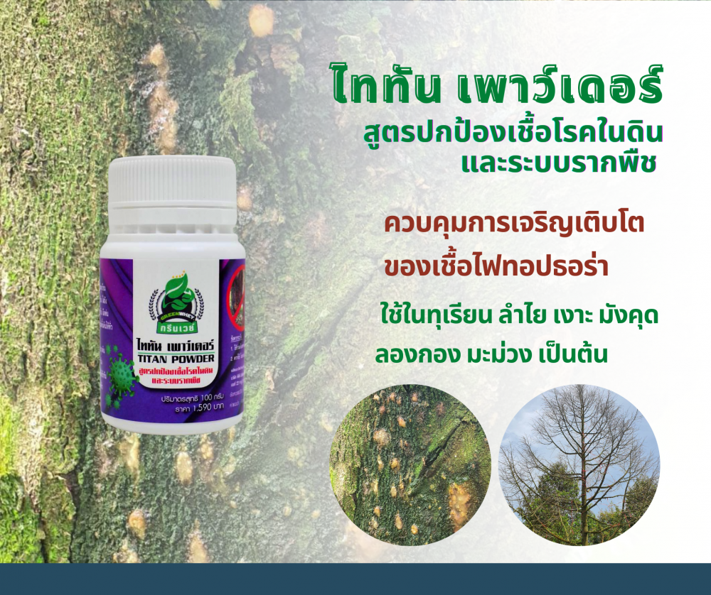 • ผสมไททัน เพาว์เดอร์กับน้ำแล้วนำไปฉีดบริเวณลำต้น ใบและพื้นดินบริเวณโคนต้น